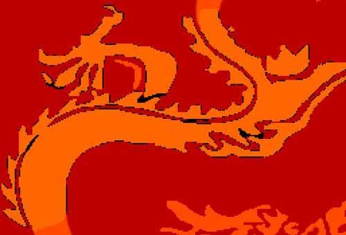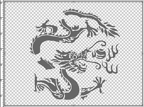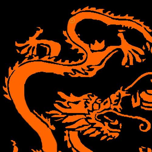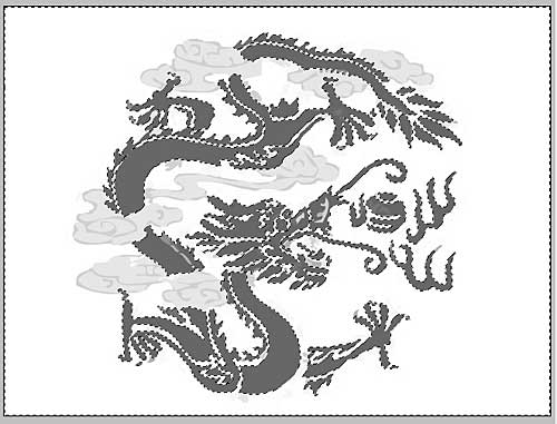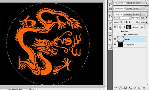 With the elliptical marquee tool, hold the shift key and make a circular selection on the layer that was just made. Make the circle around the dragon. (See illustration to the left)
