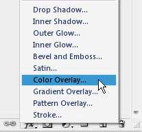 Go to the "add a layer style" button at the bottom of the layers panel and select "color overlay." (See left illustration)