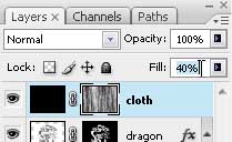 Drop the fill value in your layers panel to 40%. Your layers panel should look like the illustration to the left.
