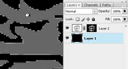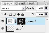 Select all of the image and copy and paste the image into your "layer_masks" document that you created on layer 2. Your layers panel should look like the illustration to the left.