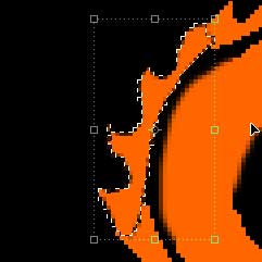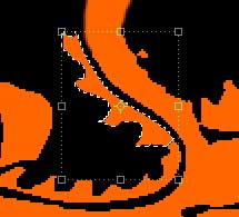 This will show the transform bounding box around the selection. Move the "fins" selection to a spot on the dragons back that is missing fins. Rotate the selection and Size the selection down to fit it in position. (See illustration to the left)