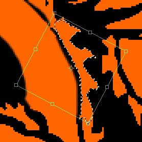 The selection should look like a duplicate of the fins you selected. Once the fins are in position, deselect (Ctrl + d). Then use the paint brush to fix any areas that are choppy looking. (See illustration to the left)