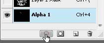 With the fins selected, go to the Channels panel. This is located next to the layers panel. You can also find the Channels panel if you go to Window/Channels. Go to the Channels panel and click the save selection at the bottom of the Channels panel. (See illustration to the left)