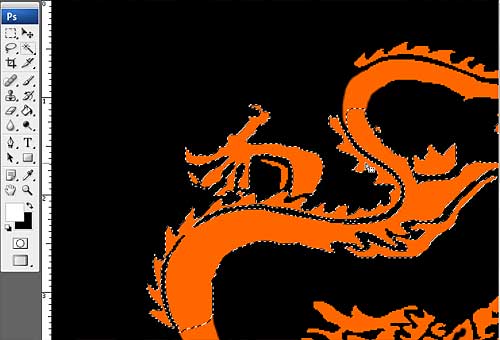 Quick Mask Mode is a great utility in Photoshop that allows you to make very accurate selections. The Quick Mask Mode is only for making selections. We will use the Quick Mask Mode to accurately select the dragons fins.