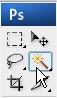 With the layer 2 selected where you pasted your image, use the magic wand tool (See illustration to the right) and select the white area of the image.