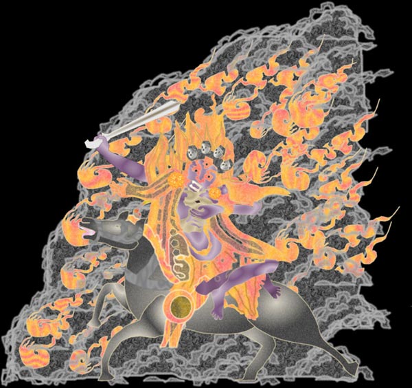 This drawing was done for the purpose of inserting an image description for my Commentary on Revelation. The purpose of this project was to demonstrate my digitization skills. This piece was created by observing Hindu religion art work. I used Fireworks to create this art piece.