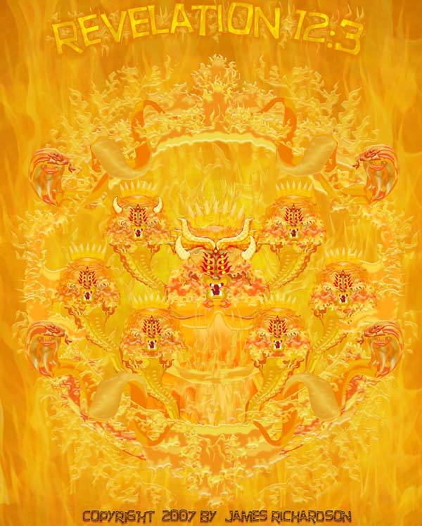 This drawing was done for the purpose of inserting an image description of Revelation 12:3 into my Commentary on Revelation. The purpose of this project was to demonstrate my digitization skills. This piece was created by observing the album cover of the Grateful Dead’s Anthem of the Sun . I used Fireworks to create this art piece.
